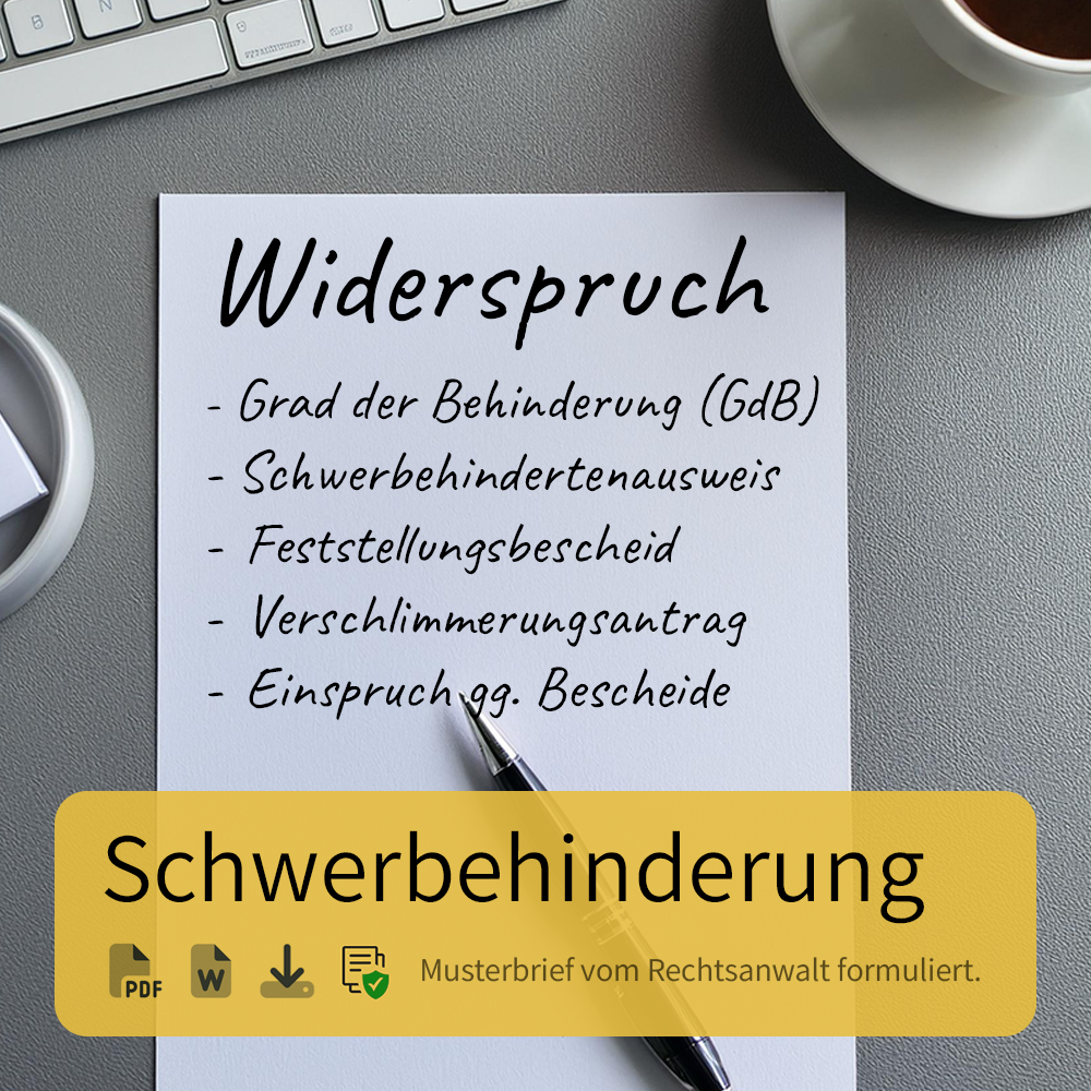 Mit dem hier heruntergeladenen Musterbrief konnte ich Widerruf gegen Ablehnungsbescheid einlegen, um doch einen höheren Grad der Behinderung zu erhalten. Auf diese Begründungen und Paragraphen wäre ich natürlich niemals selbst gekommen.